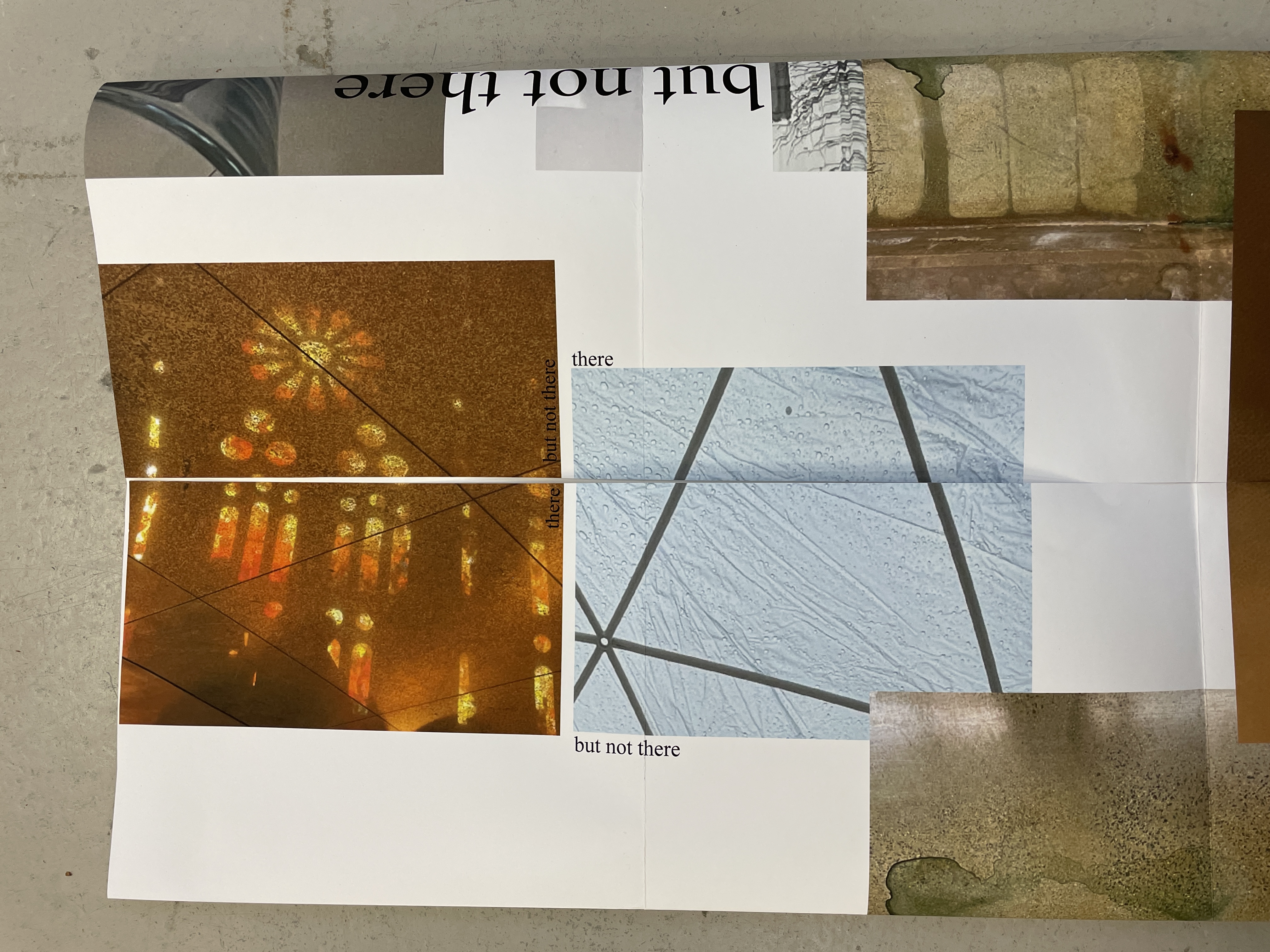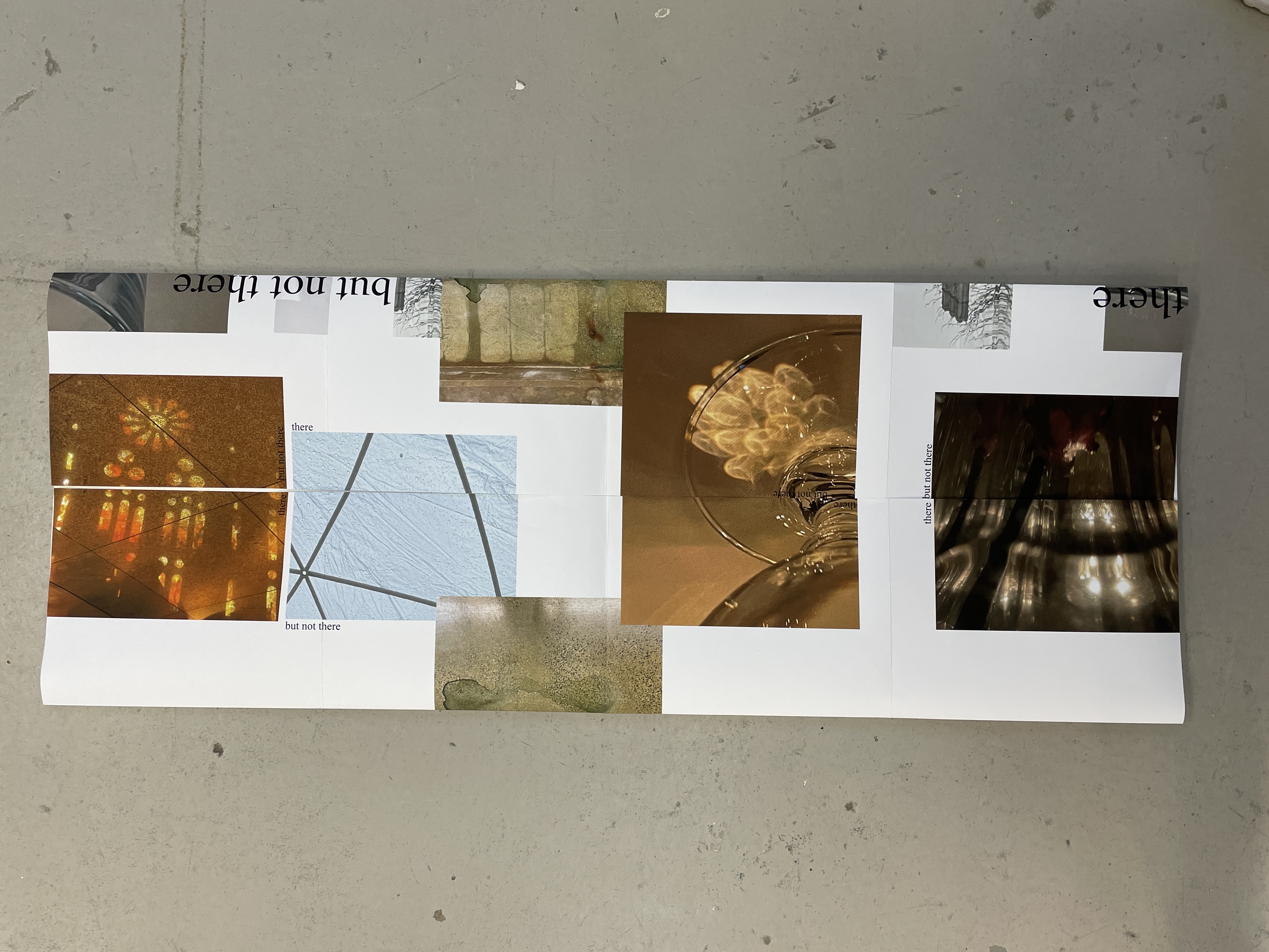There, but not there is my final project for Introduction to Graphic Design with Yeju Choi. After collecting images of indirect beauties, from window reflections to oil stains on the sidewalk, I wanted to design a large-form poster that mimicked these photographs.